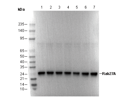 Rab27A Antibody [P2G19] recognizes endogenous levels of total Rab27a protein.