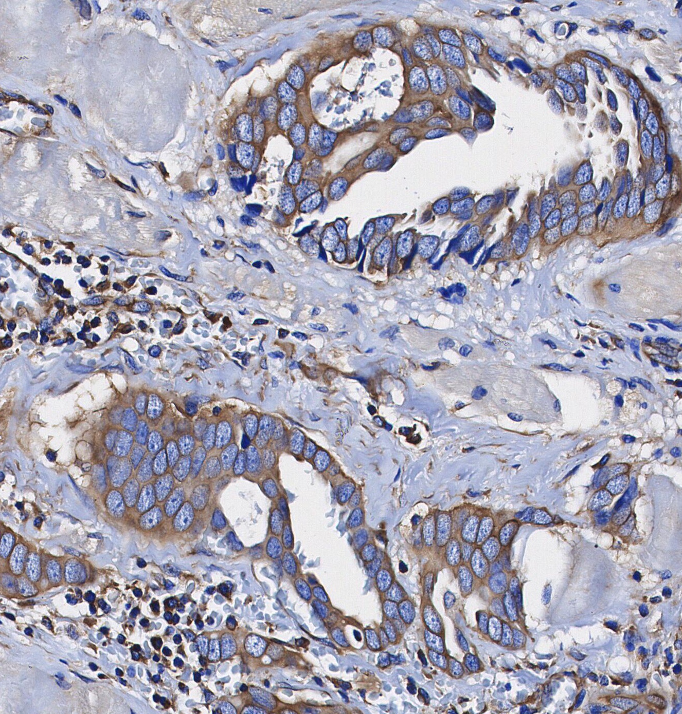 • Immunohistochemical analysis of formalin fixed paraffin embedded human breast cancer tissue with F0811 at 1/100 dilution.