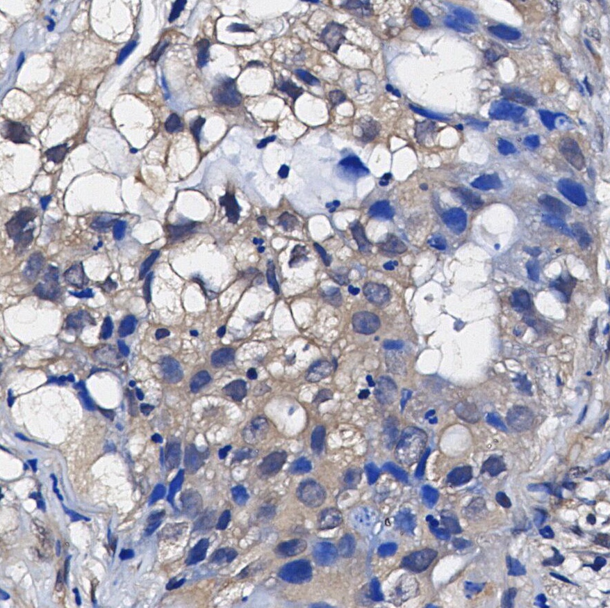 • Immunohistochemical analysis of formalin fixed paraffin embedded human Lung adenocarcinoma tissue with F1012 at 1/100 dilution.