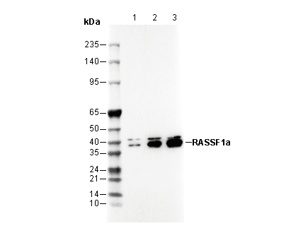 RASSF1a Antibody [D12B7] recognizes endogenous levels of total RASSF1a protein.