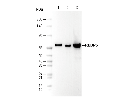 RBBP5 Antibody [A4H6] recognizes endogenous levels of total RBBP5 protein.