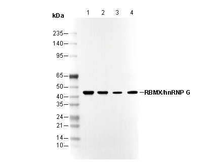 RBMX/hnRNP G Antibody [N22E18] recognizes endogenous levels of total RBMX/hnRNP G protein.
