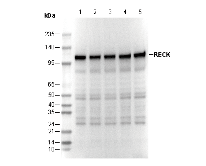 RECK Antibody [K10J8] detects endogenous levels of total RECK protein.