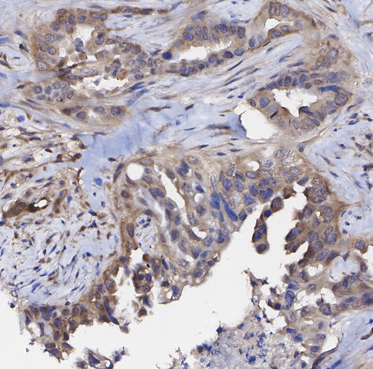 • Immunohistochemical analysis of formalin fixed paraffin embedded human Lung adenocarcinoma tissue with F0260 at 1/50 dilution.