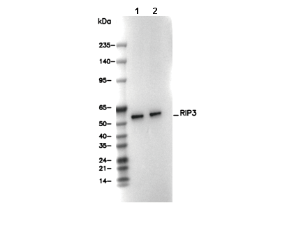 RIP3 Antibody [H22B6] detects endogenous levels of total RIP3 protein.