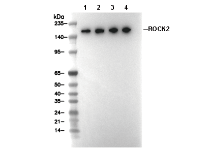 ROCK2 Antibody [G16E9] detects endogenous levels of total ROCK2 protein.