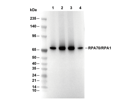 RPA70/RPA1 Antibody [N23A19] detects endogenous levels of total RPA70/RPA1 protein.