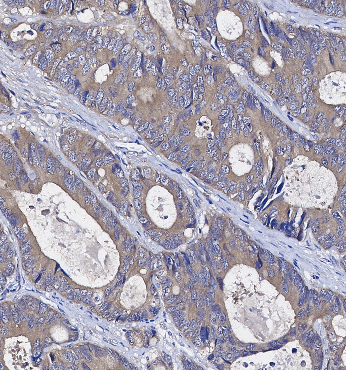 • Immunohistochemical analysis of formalin fixed paraffin embedded human Colorectal cancer tissue with F1163 at 1/100 dilution.