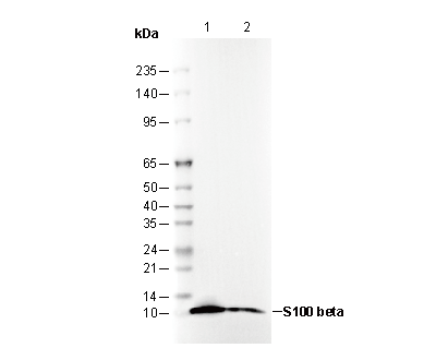 S100 β Antibody [K11H13] recognizes endogenous levels of total S100 β protein.
