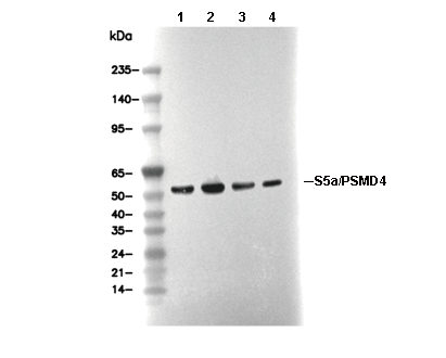 S5a/PSMD4 Antibody [K9M17] detects endogenous levels of total S5a/PSMD4 protein.