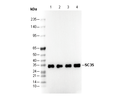 SC35 Antibody [M24G8] detects total endogenous levels of SC35 protein.