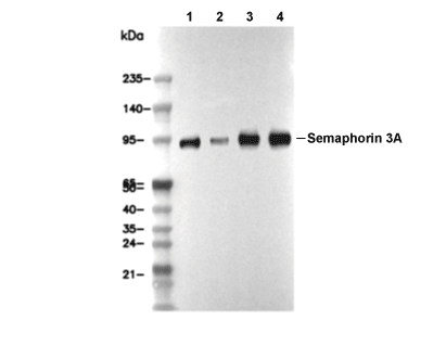 Semaphorin 3A Antibody [A21D7] detects endogenous levels of total Semaphorin 3A protein.