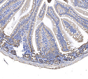 • Immunohistochemical analysis of formalin fixed paraffin embedded mouse intestine tissue with F2563 at 1:50 dilution. ,