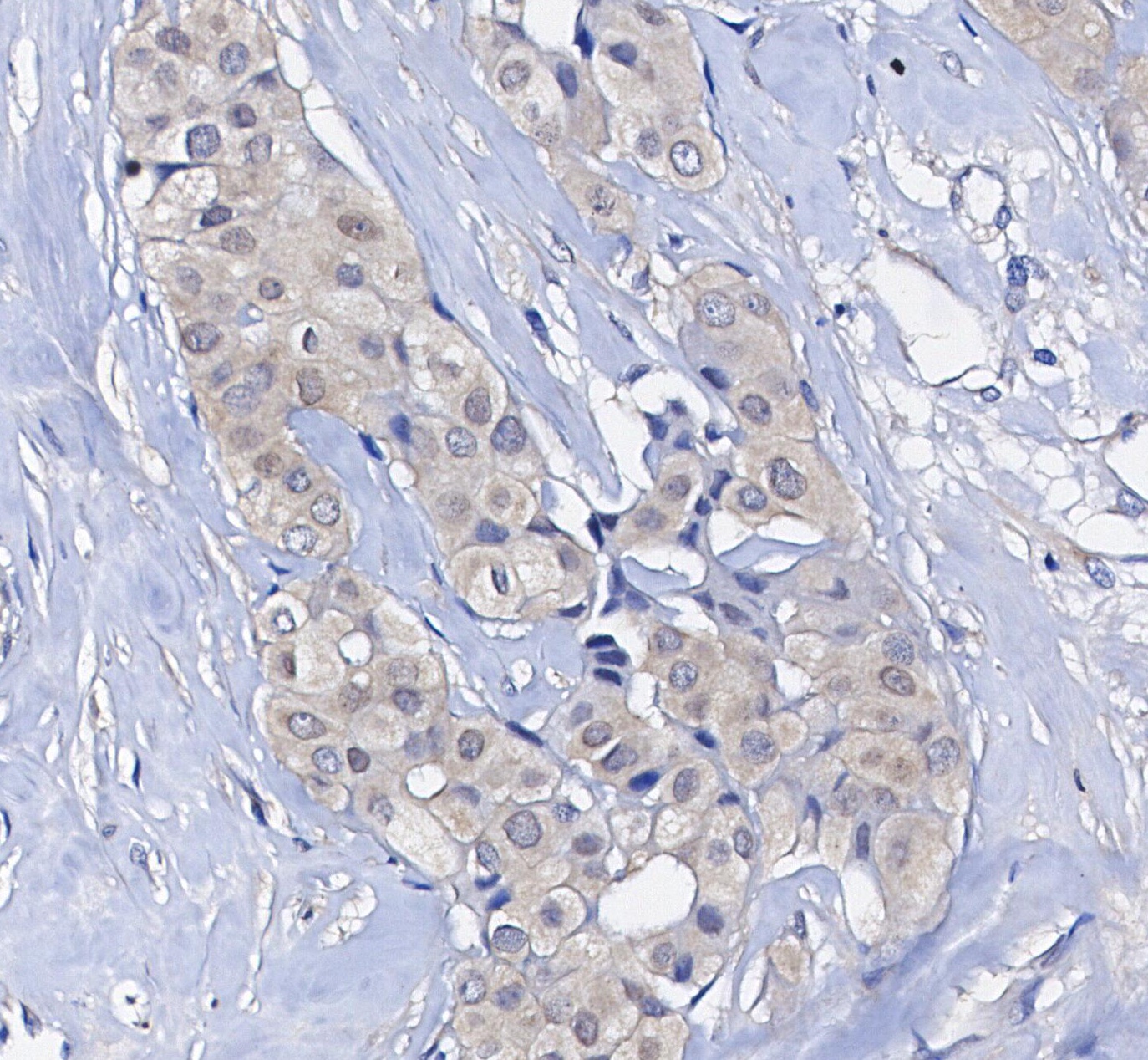 • Immunohistochemical analysis of formalin fixed paraffin embedded human breast cancer tissue with F0261 at 1/100 dilution.