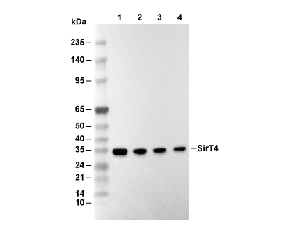 SirT4 Antibody [C24N9] detects endogenous levels of total SirT4 protein.