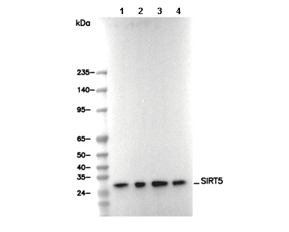 SIRT5 Antibody [G24H6] detects endogenous levels of total SIRT5 protein.