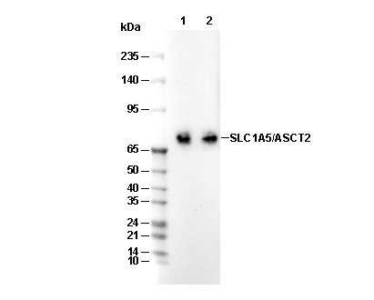 SLC1A5/ASCT2 Antibody [F12D14] detects endogenous levels of total SLC1A5/ASCT2 protein.