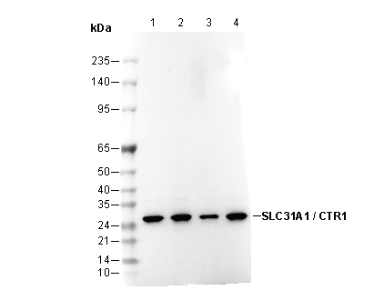 SLC31A1 / CTR1 Antibody [A18L7] recognizes endogenous levels of total SLC31A1/CTR1 protein.