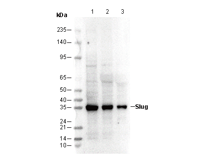Slug Antibody [A12F2] recognizes endogenous levels of total Slug protein.