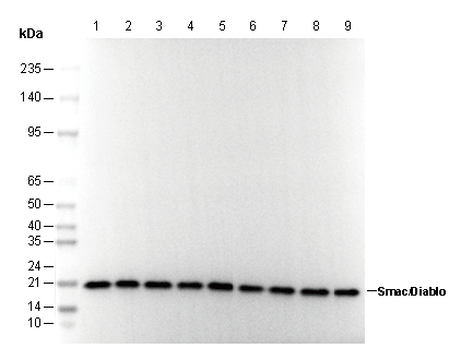 Smac/Diablo Antibody [J5K7] recognizes endogenous levels of total Smac/Diablo protein.