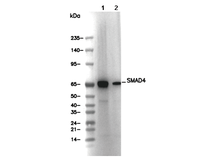 SMAD4 Antibody [C22D20] recognizes endogenous levels of total SMAD4 protein.