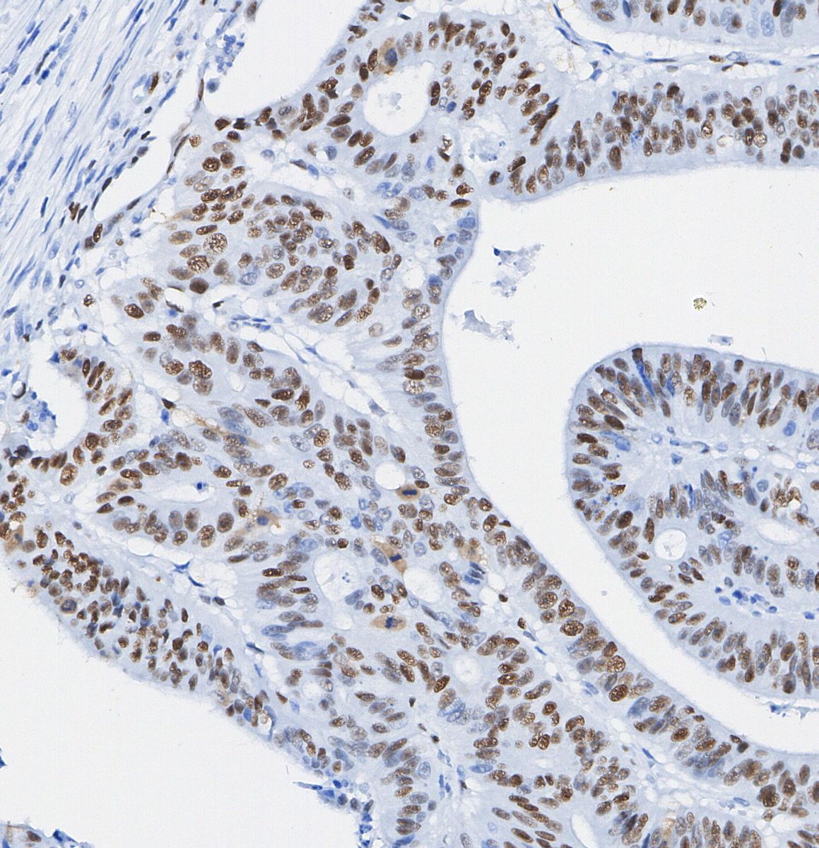 • Immunohistochemical analysis of formalin fixed paraffin embedded human Colorectal cancer tissue with F1264 at 1/200 dilution.
