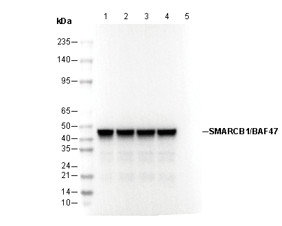 SMARCB1/BAF47 Antibody [J4P4] recognizes endogenous levels of total SMARCB1/BAF47 protein.