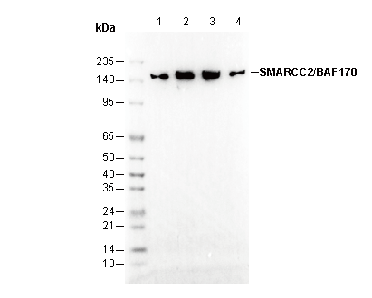 SMARCC2/BAF170 Antibody [J7C24] recognizes endogenous levels of total SMARCC2/BAF170 protein.