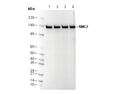 SMC2 Antibody [L9G12] recognizes endogenous levels of total SMC2 protein. This antibody does not cross-react with other SMC proteins, including SMC1, SMC3, and SMC4.