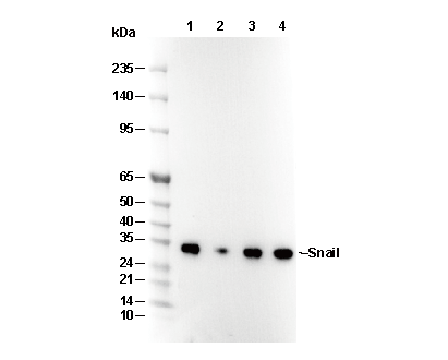 Snail Antibody [K14K14] detects endogenous levels of total Snail protein.
