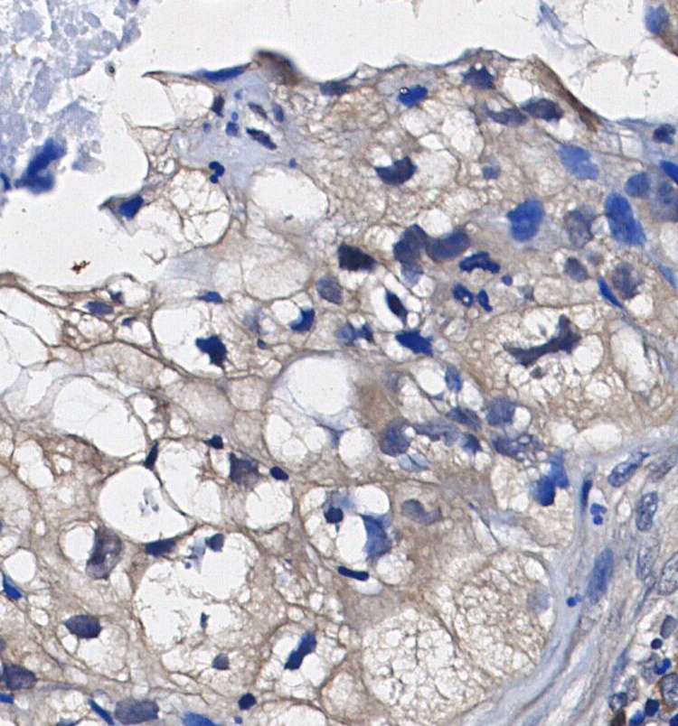 • Immunohistochemical analysis of formalin fixed paraffin embedded human Lung adenocarcinoma tissue with F1015 at 1/200 dilution.