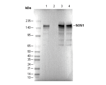 • Lane 1: A431, Lane 2: A431 (koSOS1), Lane 3: SK-OV-3, Lane 4: HEK-293