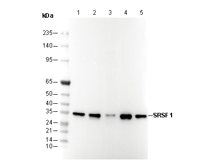 SRSF1 Antibody [E13N21] recognizes endogenous levels of total SRSF1 protein.