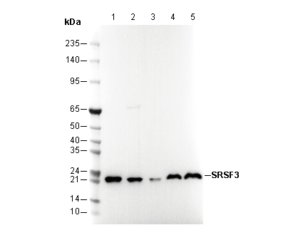 SRSF3 Antibody [L11E8] recognizes endogenous levels of total SRSF3 protein.