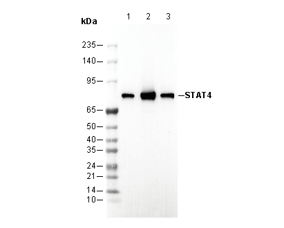 STAT4 Antibody [F17A14] recognizes endogenous levels of total STAT4 protein.