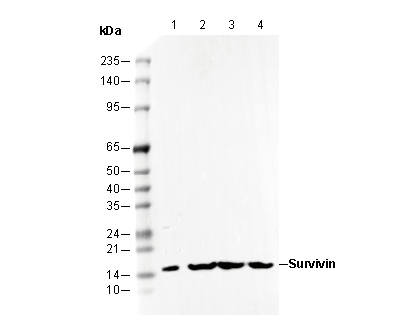 Survivin Antibody [F21B2] detects endogenous levels of total Survivin protein.