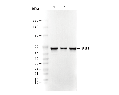 TAB1 Antibody [M21E14] detects endogenous levels of total TAB1 protein.