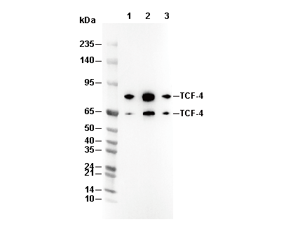 TCF4/TCF7L2 Antibody [J22L24] recognizes endogenous levels of total TCF-4 protein.