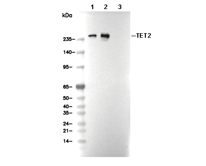 • Lane 1: DLD-1, Lane 2: 293T, Lane 3: 293T (KO TET2)