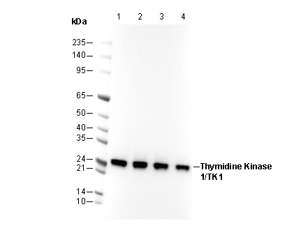 Thymidine Kinase 1/TK1 Antibody [H23D16] recognizes endogenous levels of total thymidine kinase 1 protein.