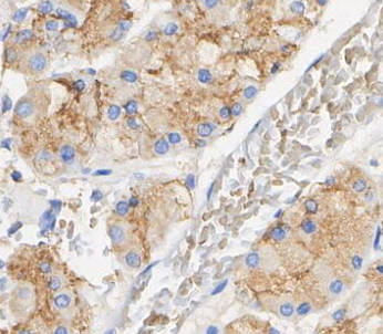 • Immunohistochemical analysis of formalin fixed paraffin embedded human stomach tissue with F2122 at 1/600 dilution.