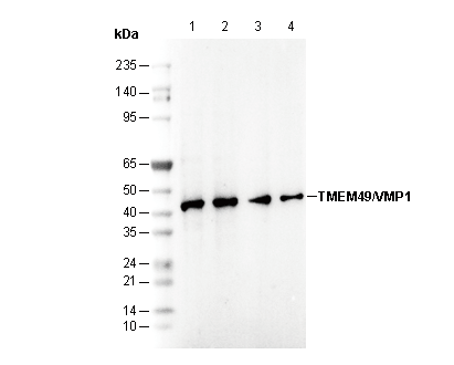 TMEM49/VMP1 Antibody [J17M11] recognizes endogenous levels of total TMEM49/VMP1 protein.