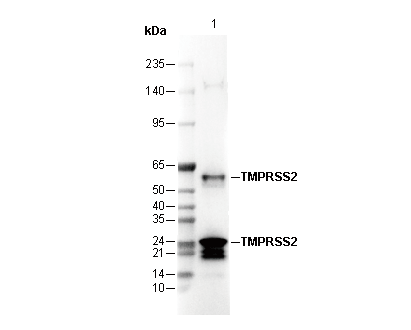 TMPRSS2 Antibody [L10D17] recognizes endogenous levels of total TMPRSS2 protein.