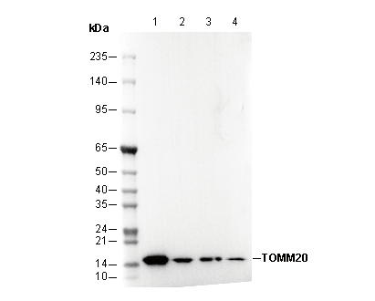 TOMM20 Antibody [H9A1] recognizes endogenous levels of total TOMM20 protein.
