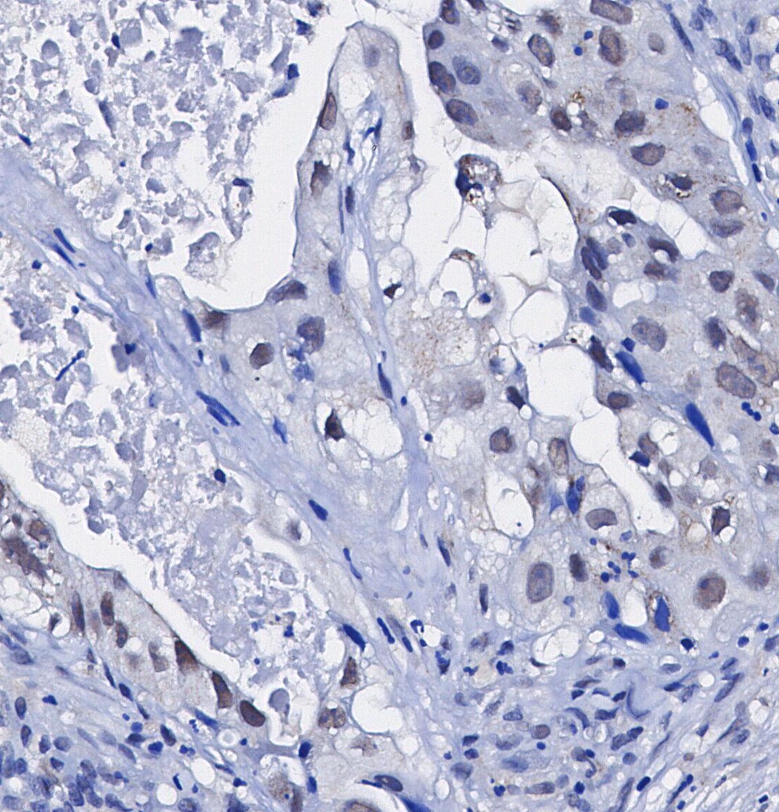 • Immunohistochemical analysis of formalin fixed paraffin embedded human Lung adenocarcinoma tissue with F1219 at 1/100 dilution.