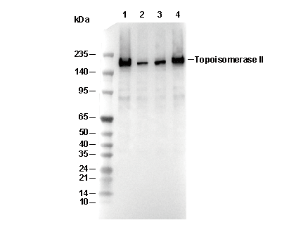 Topoisomerase IIα Antibody [H22C21] detects endogenous levels of total Topoisomerase IIα protein.
