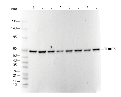 TRAF5 Antibody [B2E8] recognizes endogenous levels of total TRAF5 protein.