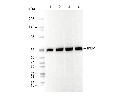 TrCP Antibody [D15J17] recognizes a 40 kDa band of unknown origin.