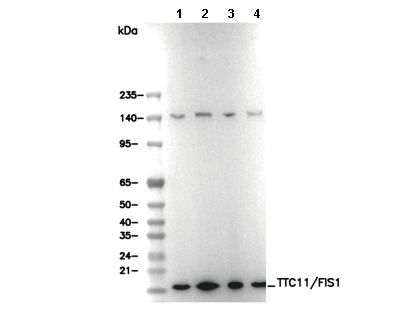 TTC11/FIS1 Antibody [J7D4] detects endogenous levels of total TTC11/FIS1 protein.
