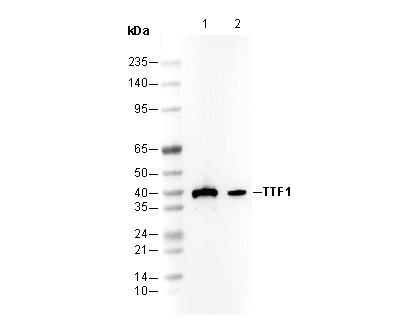 TTF1 Antibody [D5E21] detects endogenous levels of TTF1 proteins.